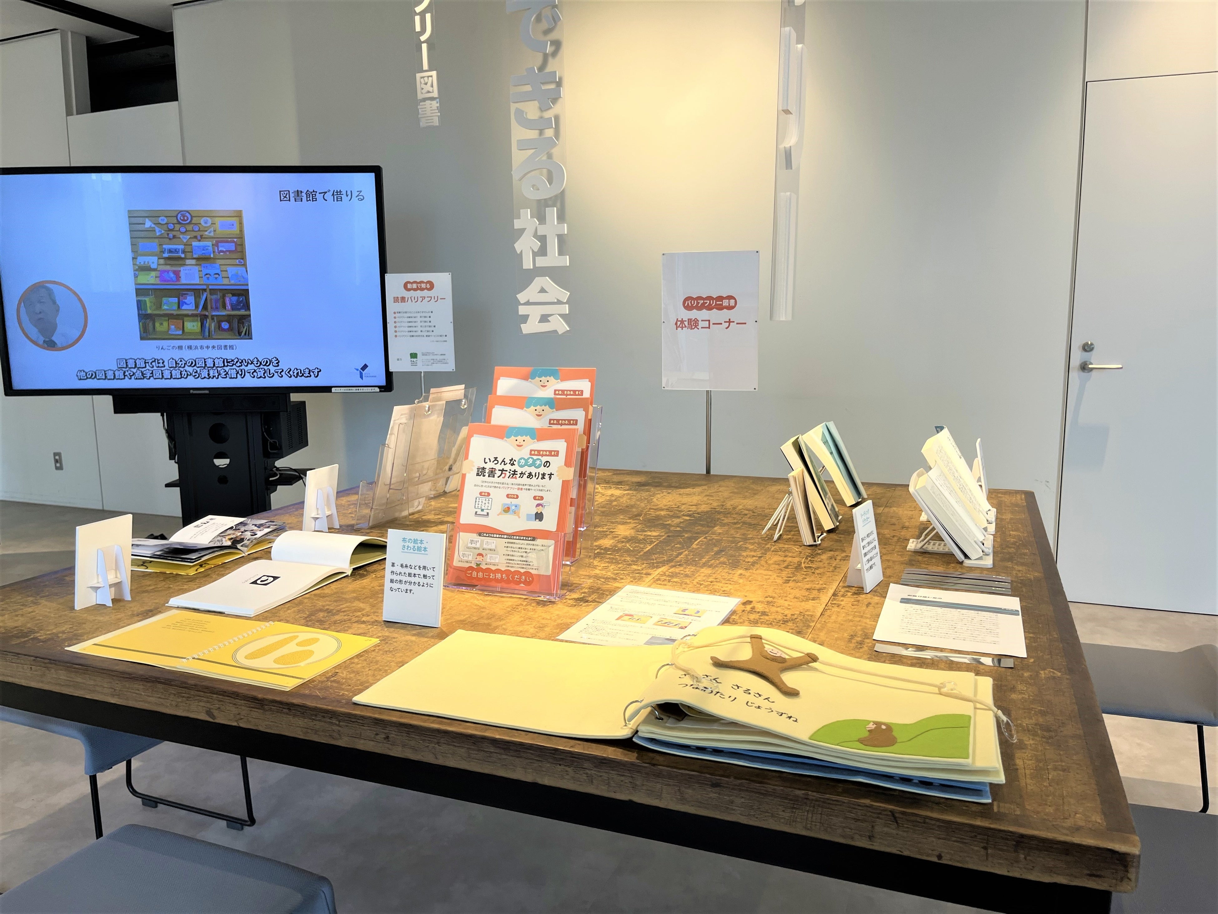 「バリアフリー図書の体験」、「啓発動画の放映」、「啓発パネル展示」など、読書バリアフリーについて分かりやすくお伝えする企画展を開催しています。