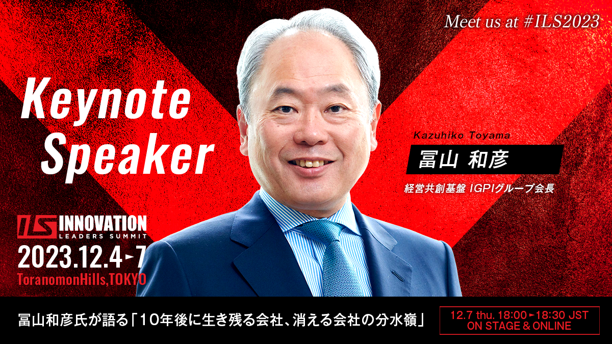アジア最大のオープンイノベーションの祭典「イノベーションリーダーズサミット2023(略称:ILS2023) 運営:株式会社プロジェクトニッポン 後援:経済産業省」は、12月4日(月)-12月7日(木)に虎ノ門ヒルズ(東京)にて開催します(一部オンライン同時配信)。