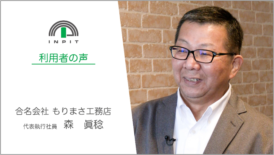 窓口支援事例動画第1弾は「INPIT知財総合支援窓口のご紹介」、「合名会社もりまさ工務店(現:株式会社音無 防音事業部)」の2本です。