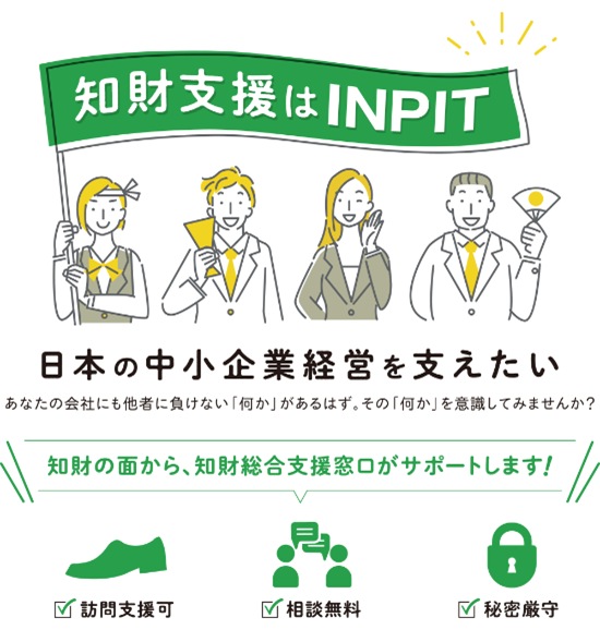 INPIT知財総合支援窓口は中小企業等が抱える様々な経営課題について、自社のアイデア、技術、ブランドなどの「知的財産」の側面から解決を図る支援窓口です。知財総合支援窓口は、各都道府県に設置しており、地域に根付いた支援を行っています。