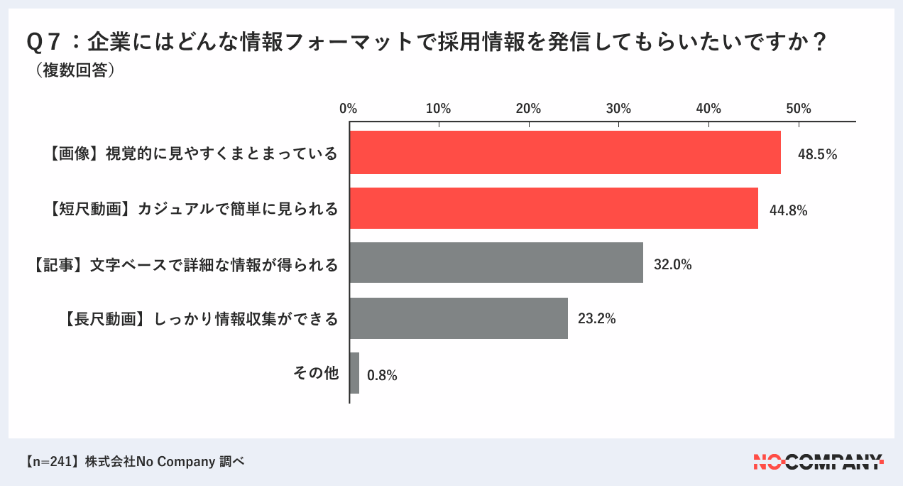 No Companyは、「スタイルマッチで組織と人を変えていく」をミッションに、採用マーケティングのリーティングカンパニーとして求職者と企業がより良い関係で就職・採用活動に取り組める環境づくりを支援する会社です。本調査によって就活生の採用情報に対するニーズやインサイトを分析し発信することで、多くの企業がより効果的な採用活動を行うための参考になればと考えています。