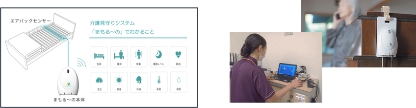 ・離床、ドアの開閉、トイレの開閉、椅子の着座をセンサーでキャッチ