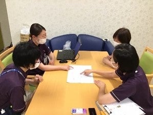 カンファレンス:看護師・介護士などが集まり、情報共有、認識のすり合わせ、問題の発見と改善策を話し合う。