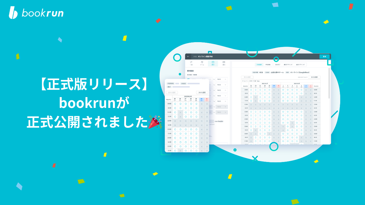 その中で『bookrun』は、ITツールに慣れていない方でも直感的な操作で複数人での日程調整ができる他、当社が提供するフォーム作成管理サービス『formrun』とも連携ができるなど、幅広い職種における業務効率化に貢献します。