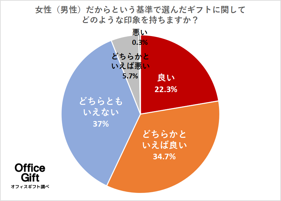 上記でギフトを贈った・受け取った方の7割以上がジェンダーを意識する機会があったことが判明しましたが、「女性(男性)だからという基準でギフトを選んだ場合、どのような印象をもちますか?」というアンケートを取ったところ、以下のような結果となりました。