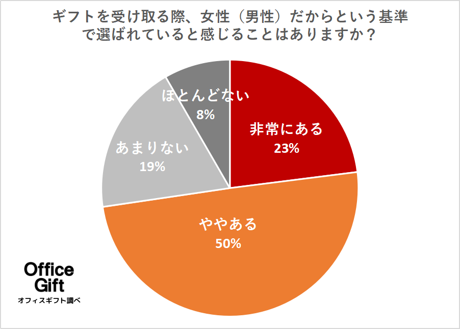 先述したように、社会的な男女間の平等性について不満をもっている方もいらっしゃいましたが、ギフトに関してはジェンダーギャップを感じる方は少ない傾向にありました。