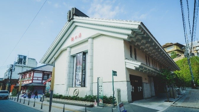 道後温泉本館の近くにある姉妹湯です。1953年に誕生し、現在の建物は1984年に改築されました。木造の本館とは趣が異なり、白壁の蔵屋敷風のモダンな雰囲気が特徴です。本館と同じ形の湯釜が設置されており、浴室内の天井は高く、広々としています。