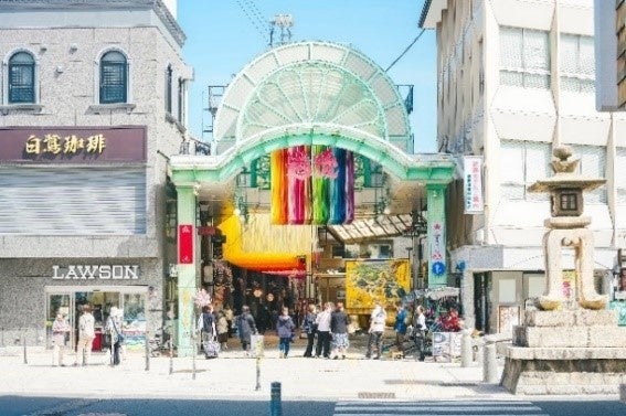 レトロな駅舎をくぐれば、三津浜商店街が迎えてくれます。