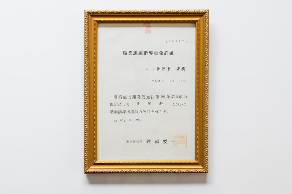 資格:一級塗装技能士、認定塗装診断士、職業訓練指導員免許〔塗装科〕、上級救急救命士