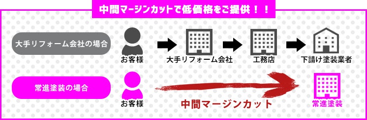 他社に比べて中間業者を介さず、直接的に工事を行うことで、不要なマージンを省きます。その結果、お客様にとって経済的な価格設定が可能となります。