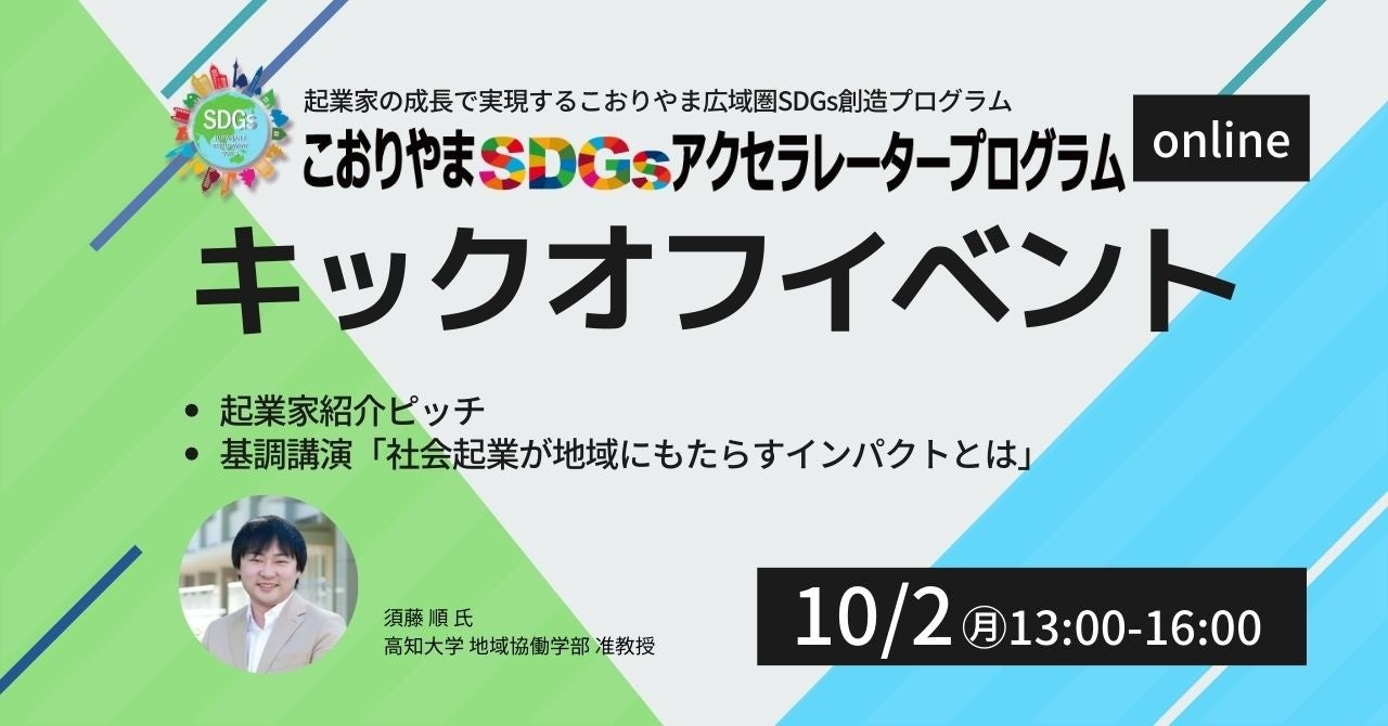 社会課題の解決と事業拡⼤の両⽴に挑むこおりやま広域圏内の起業家等(応募要件に当てはまる中⼩企業者を含む)が、こおりやま広域圏のあらゆるステークホルダーとともに叶えたい未来を実現させ、こおりやま広域圏がSDGsの先進地になることを⽬指すための、起業家等に向けた成⻑⽀援プログラム。