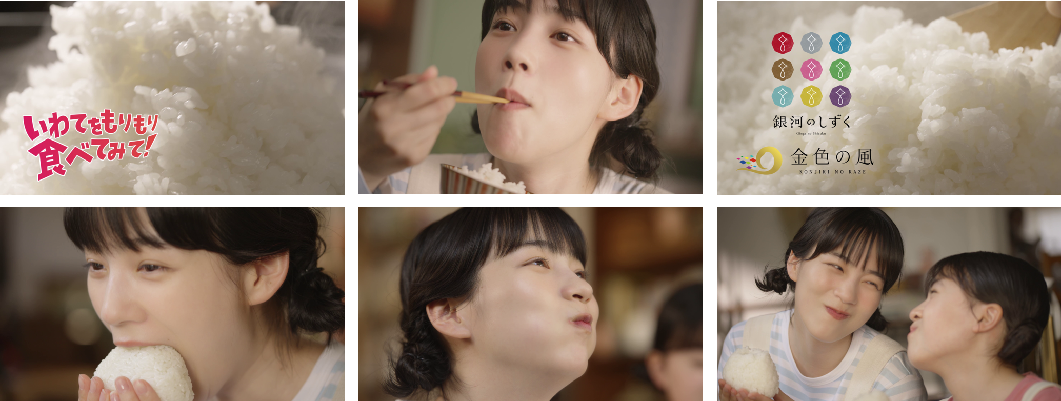 今回のTVCMも、結成3年目になるのんさんと新津ちせさんによるコンビ「おコメディアンズ」が登場。味わいが軽やかで口あたりが特徴的な「銀河のしずく」と、岩手県内で生産量が最も多く、長く愛されてきた「岩手県産ひとめぼれ」の魅力を、おにぎりや朝食でもりもり食べながら伝えていただきます。