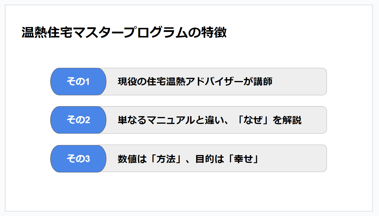 単なるマニュアルと違い、なぜ温熱が大事なのか、なぜ省エネ計算が必要なのかといった
