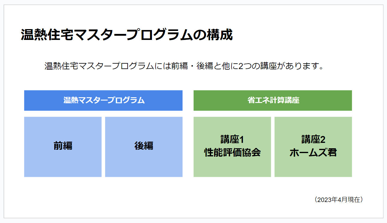 温熱住宅マスタープログラムには4つの講座があります。
