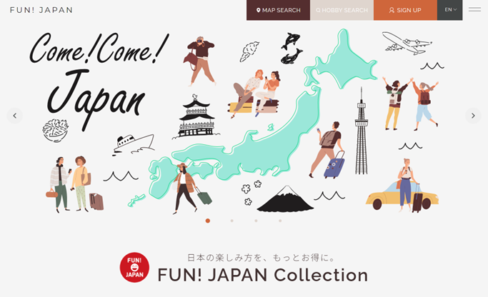 FUN! JAPAN Collection では、会員の皆様にこれまで以上により多くの日本の魅力を感じて頂くために、好きな「地域」や「趣味」に合わせた情報をお届けすると共に、お得なキャンペーンやイベント等へ参加することができます。