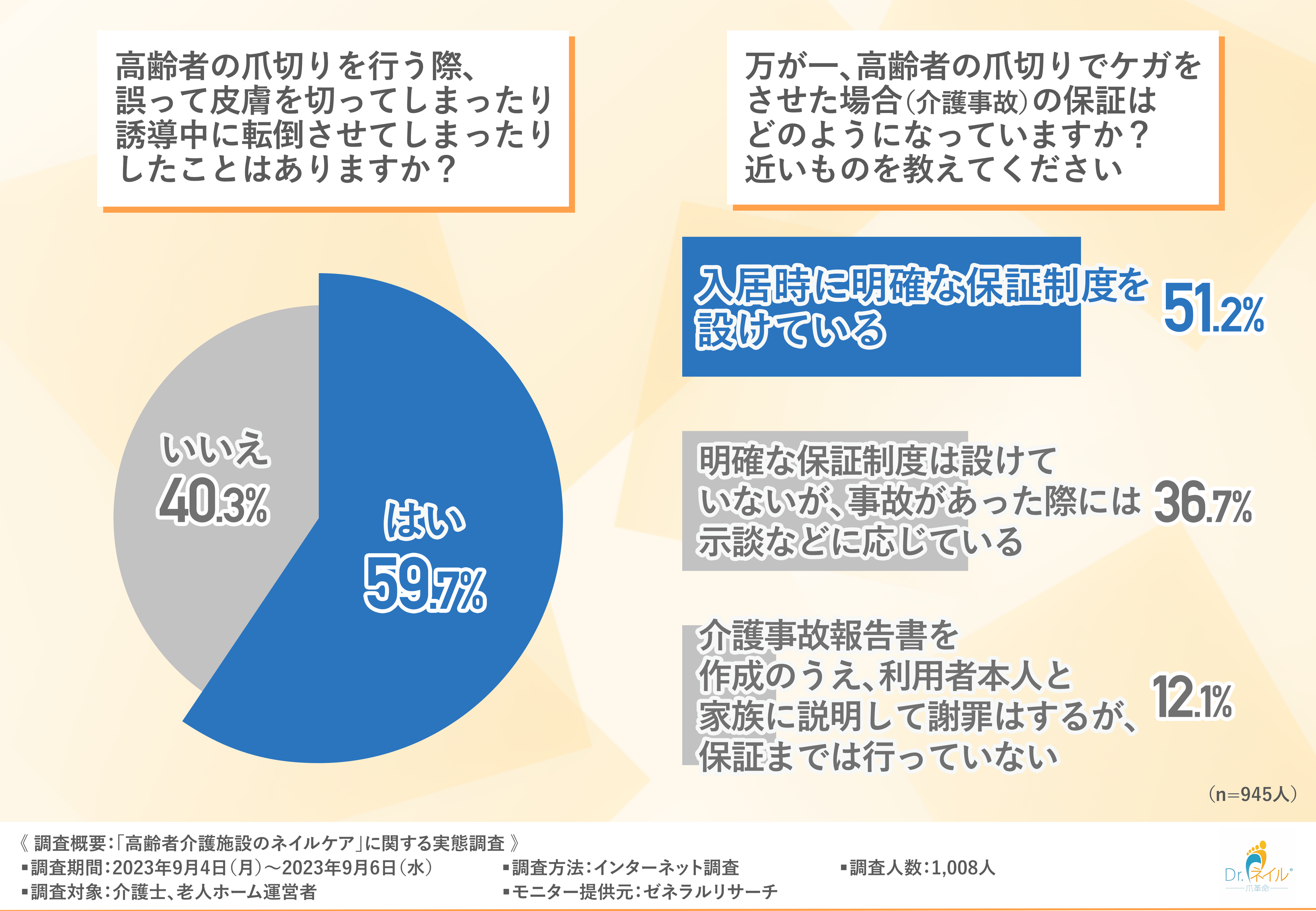 ここまでの調査で、高齢者に爪切りでケガをさせた場合の保証がある介護施設は約半数であることがわかりました。