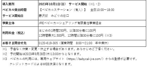 観光案内所、ホテル受付、手荷物預かり所など、ご一緒にサポートいただける有人貸出場所を募集しています。店舗の係員さまにご対応いただく有人貸出であれば、初期・ランニング費用なく導入いただけます。ご希望の方は、お問合せフォーム「ベビカル導入について」 https://babycal-jre.com/contact/ からお問い合わせください。