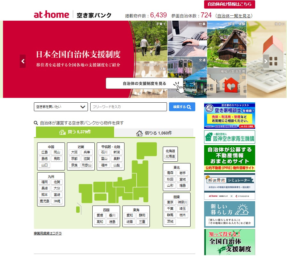 国土交通省が推進している空き家・空き地等の流通活性化に向けた取組みに賛同し、全国の空き家・空き地や公的不動産(PRE)、地域の情報と消費者ニーズを結びつけることを目的に「アットホーム 空き家バンク」を構築・運営しています。