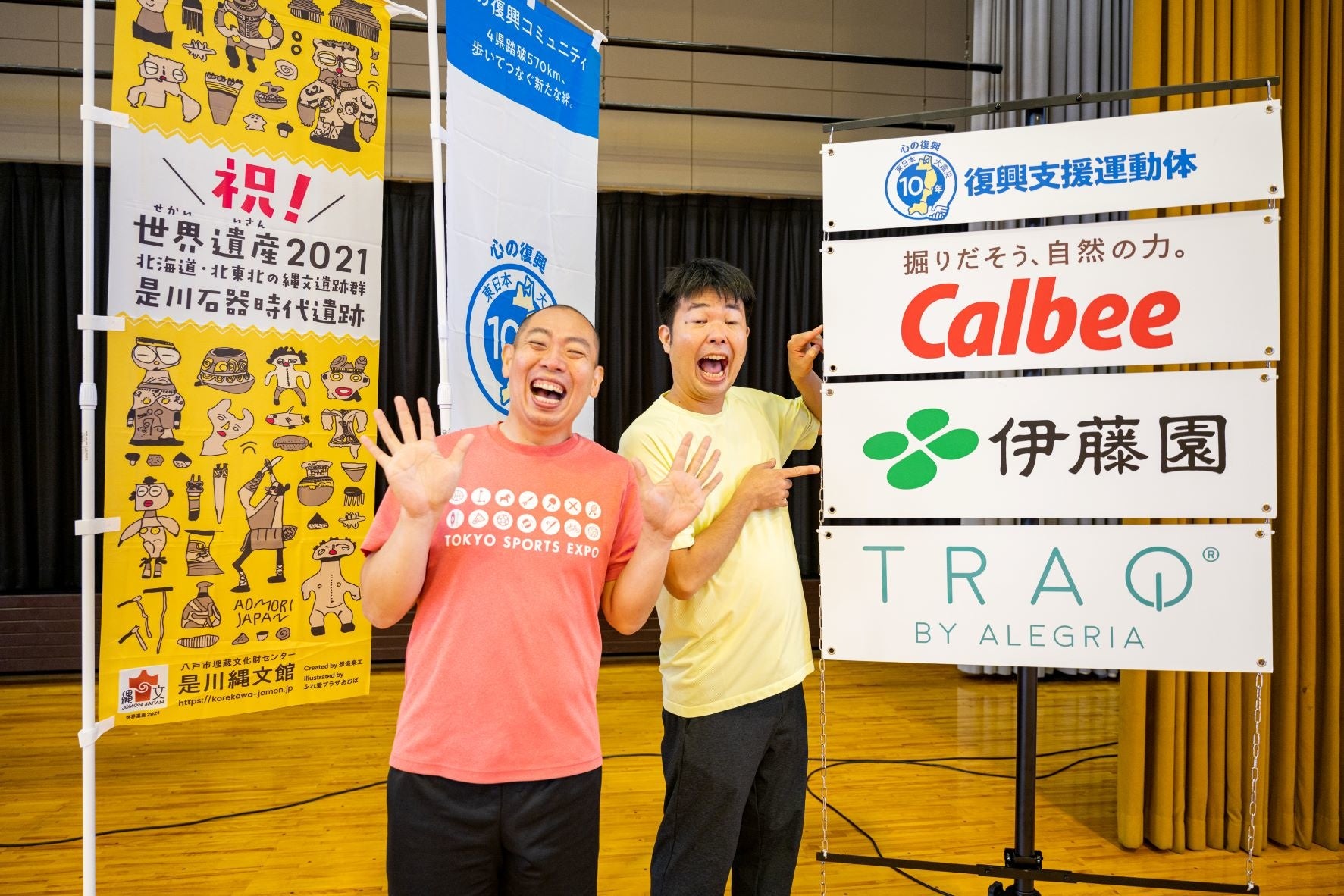お二人は「東北復興支援”絆ウォーク”に参加させていただいた中で本日の天気は比較的良く、八戸市を堪能させていただきました。参加者の皆様からも地元のことをたくさん教えていただき、楽しく過ごせました。」とコメントしました。