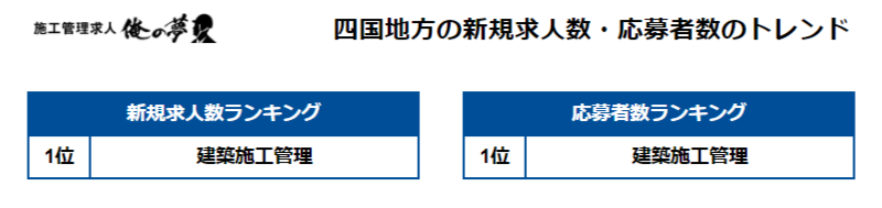 四国地方は、新規求人数・応募者数ともに、建築施工管理がトップでした。