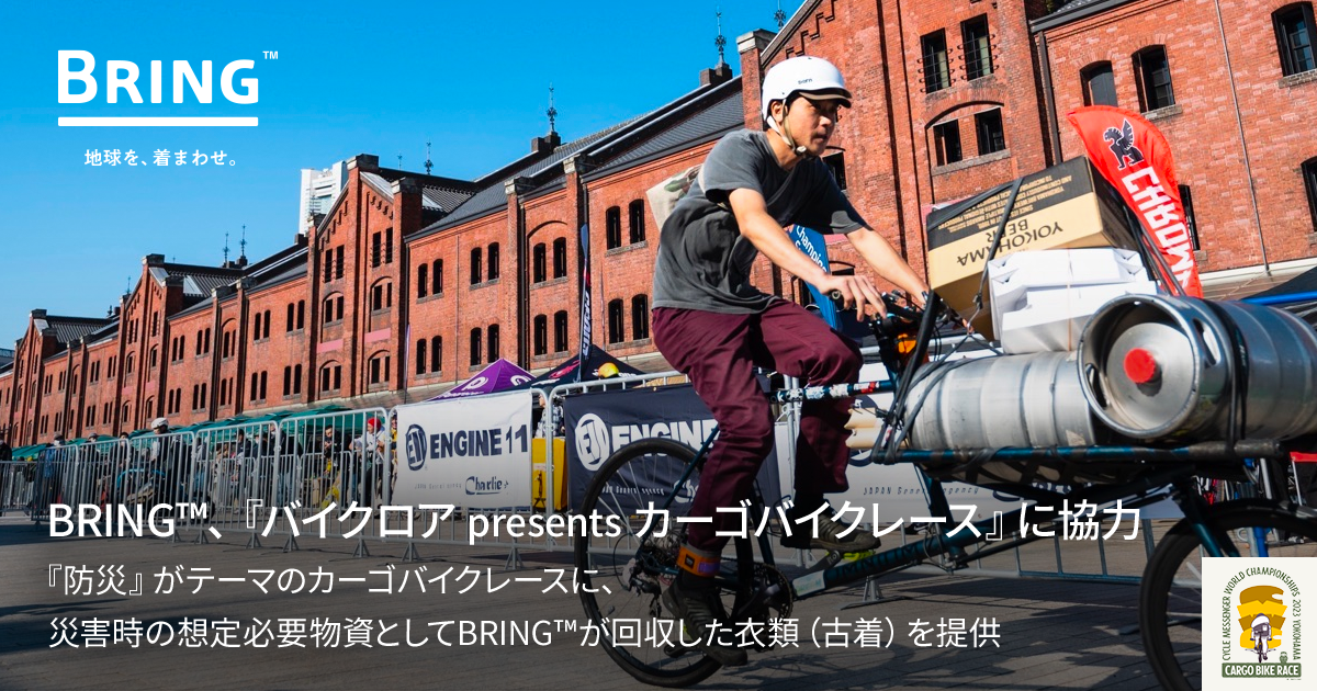 そして、今回BRING™は本レースの開催趣旨に共感し、災害時を想定した時の必要物資として回収した衣類(古着)を提供いたしました。レースに貸し出しされた古着はBRING™が再度回収し、素材に応じてリユース・リサイクルされ、その中でもポリエステル繊維100%の衣類についてはJEPLAN独自技術により再⽣ポリエステル原料「BRING Material™」にリサイクルされ、新たな服等の原料に⽣まれ変わることになります。