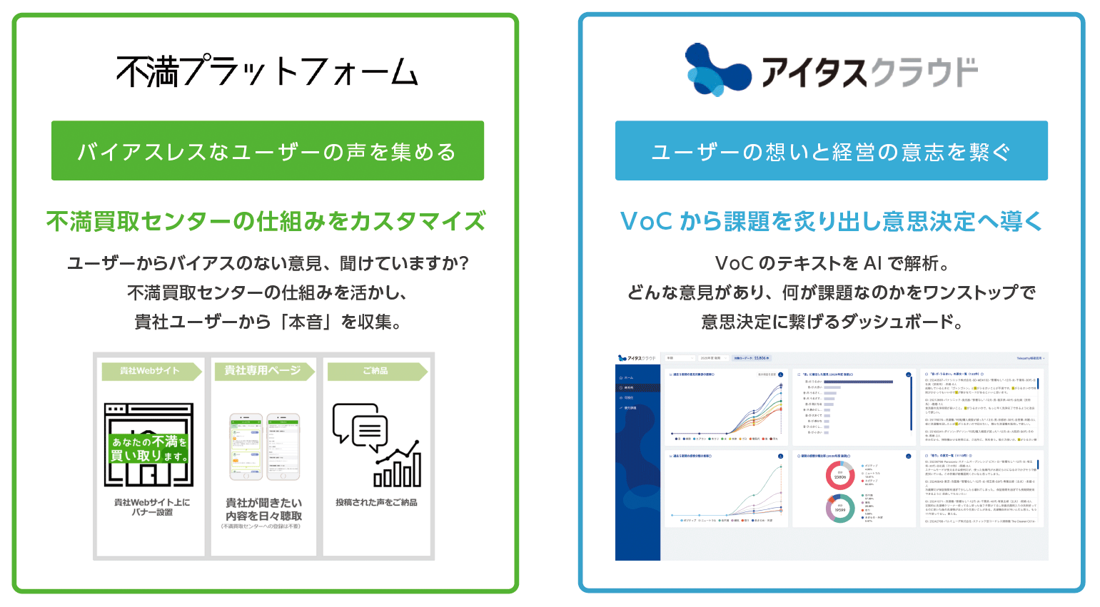 本取り組みの目的を勘案すると、在校生の忖度のない“本音”を具体的な情報として収集することが重要となります。そこで本取り組みでは、Insight Techが保有する特許取得済みの声収集プラットフォーム「不満買取センター」の仕組みである「不満プラットフォーム」を活用しました。