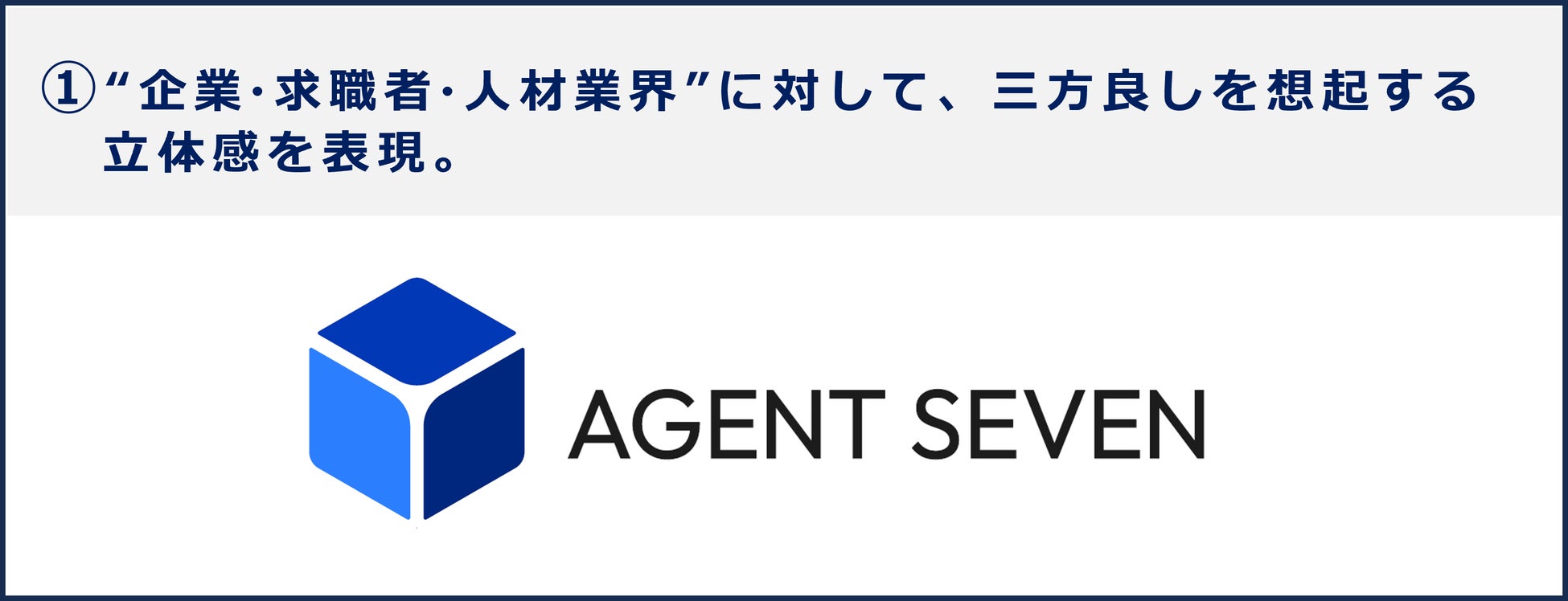 ①元々は「企業」「求職者」「人材業界」というステークホルダーに対し“三方良し”の理念を想起させる立方体を第一案に検討しており、カラーは人のキャリアを扱うからこそ“誠実さ”を体現すべく、青色で表現しようとしていました。