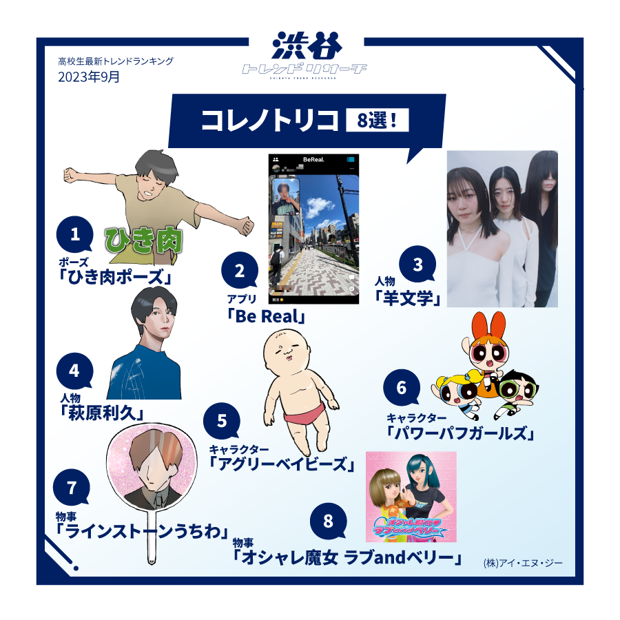渋谷トレンドリサーチでは、回収したデータに基づき、渋谷を拠点に活動しているINGteens高校生メンバーの生の声を反映し、どこよりもリアルで鮮度の高い最新の高校生トレンド速報を発表します。