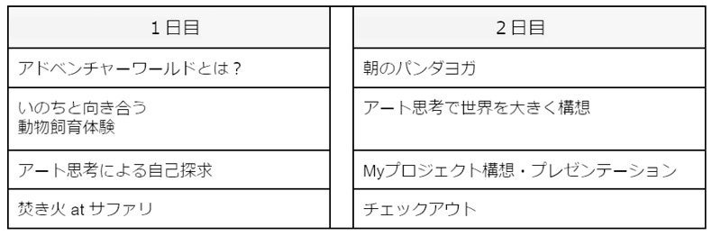 日 程 ※1泊2日のプログラムです