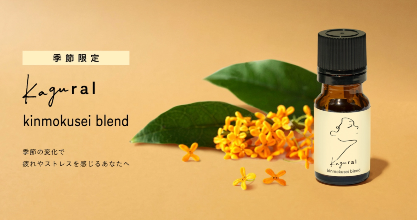 秋限定の「kagural kinmokusei blend」は、キンモクセイを中心とした甘く華やかな香りをイメージしており、香りを通じて秋の深まりを感じていただけるブレンドです。季節の変化で疲れやストレスを感じる方におすすめの商品となります。
