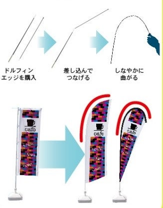 のぼり用ポールとポール台をお持ちなら、ドルフィンエッジを購入するだけで、いつもののぼり旗をおしゃれにチェンジすることができます。