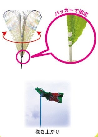 <機能的>回転して風を受け流すので、のぼりのように巻き上がりがありません。