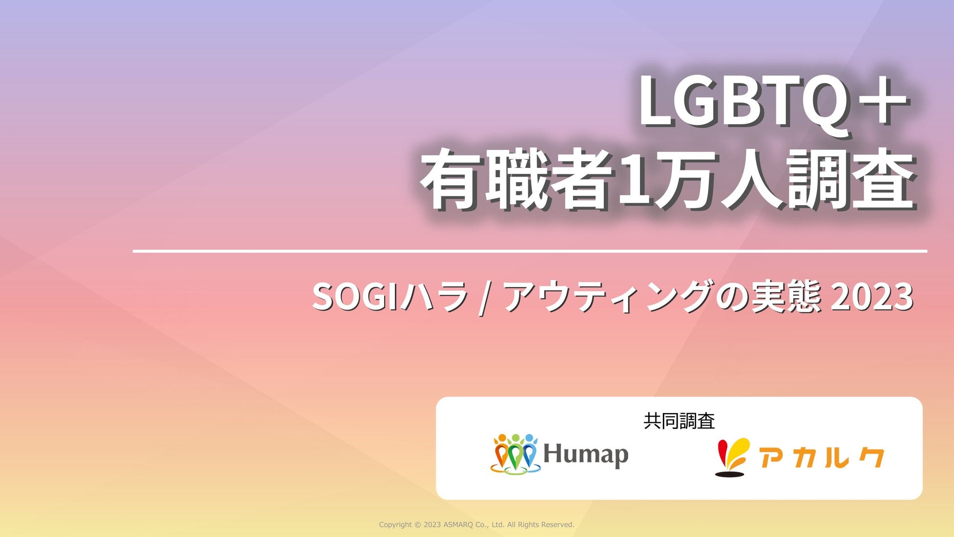 2023年4月に株式会社アスマークと共に共同で有職者1万⼈に対して、「職場におけるSOGIハラスメント、アウティングに特化したLGBTQ+の調査」を行いました。