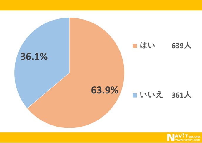 若者のお酒離れなど言われて久しいですが、まだまだお酒を飲む人は多いようです。お酒を飲みますか?という質問に対して「はい」と答えた方が63.9%いらっしゃいます。
