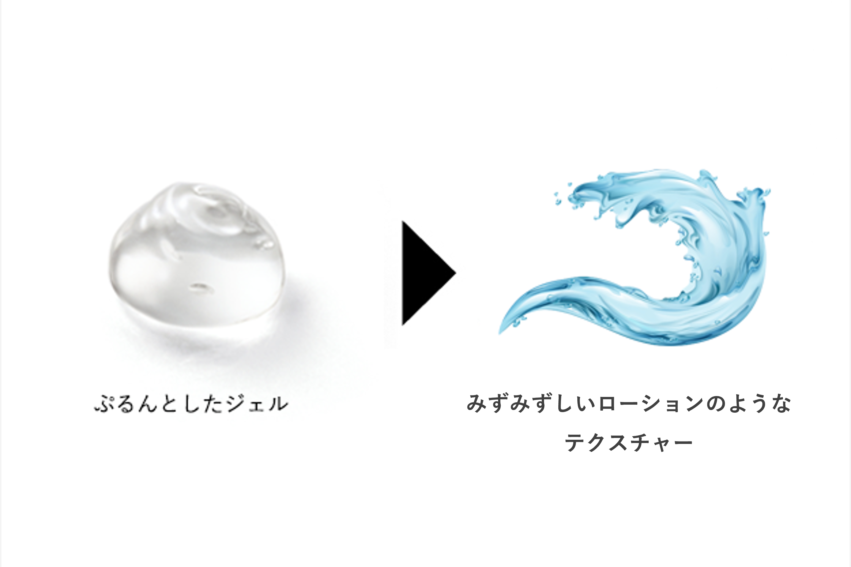 三次元ネットワーク構造のジェルクリームがローション状に変化し、水を感じながら肌になじみ、使用後にはミルクとクリームを重ねたような感触で、つるんとなめらかな肌を。1品で感触を変化させながら、ローションとクリームの機能をもった処方です。