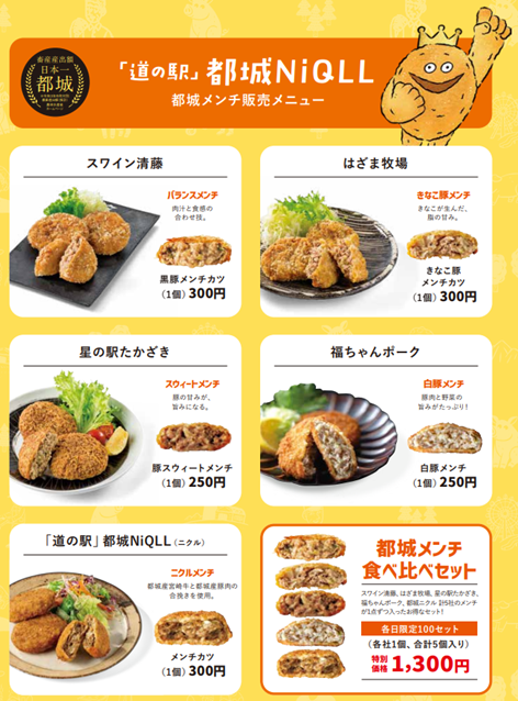 畜産業の盛んな都城市では、事業者ごとに様々なブランドポークが飼育・生産されており、直売所ではそれぞれの特性を活かしたメンチカツが販売されています。