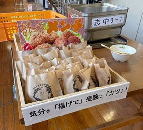 地域を盛り上げる企画として、運気を「上げて(揚げて)」、受験に「勝つ(カツ)」と題し、で都城市の中学校3年生に「応援メンチ」を提供する受験生応援企画を実施。