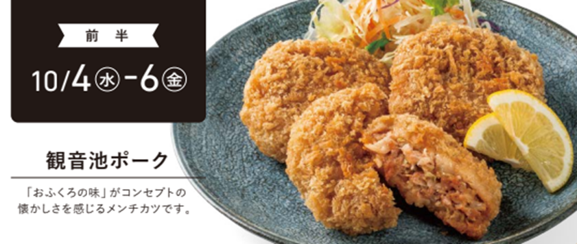 「おふくろの味」をコンセプトに、自慢の豚肉とたっぷりのお野菜を使った懐かしさを感じるメンチカツです。