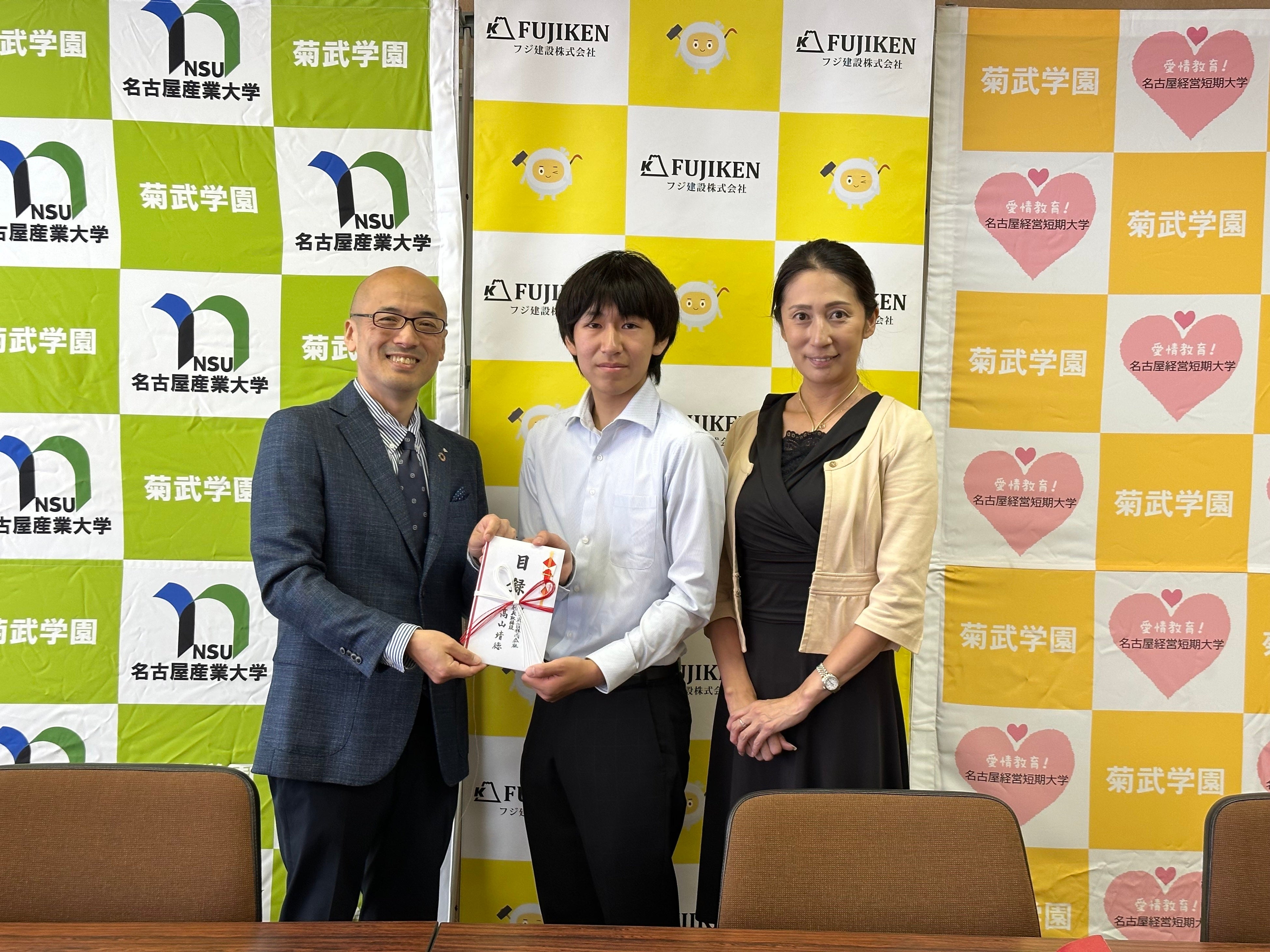 解体工事業・産業廃棄物処理業・道路清掃を基幹事業とするフジ建設株式会社(本社:名古屋市守山区)は、SDGs活動にも積極的に取り組み「4.質の高い教育をみんなに」の目標実現に向けて、学校法人菊武学園が運営します名古屋産業大学が開催する大学祭に協賛金を寄付しました。