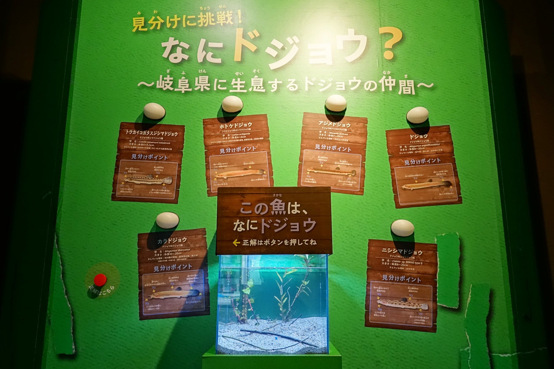 岐阜県に生息する6種類のドジョウの見分け方を紹介しています。(生体を展示しているのは1種類)見分け方のポイントを確認しながらクイズ形式で見分けに挑戦することができます。