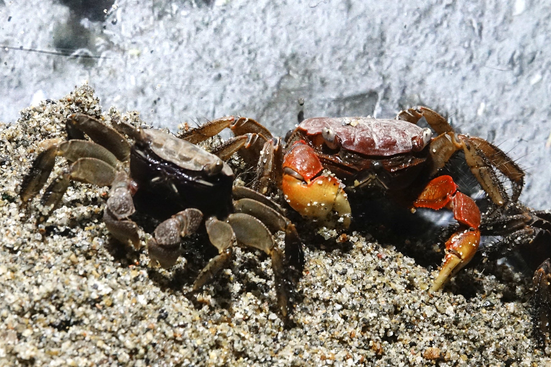 足の大きさがちがう「アカネズミ」と「ヒメネズミ」、はさみあしの色がちがう「ベンケイガニ」と「クロベンケイガニ」など、生き物の見分けるポイントを生体や剥製標本の展示で紹介します。