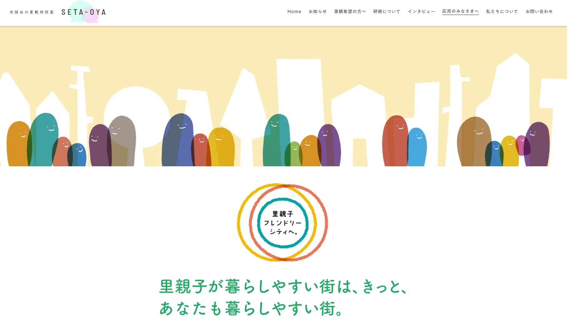 そして、子どもたちが里親さんのもとで生活をしていくためには、地域のみんなで、その生活を見守っていく事が大切です。 里親家庭であっても、どんな家庭であっても、地域の誰もが子どもたちの成長を支え、子育てに協力しあえる街−−。世田谷区は、里親を推進するだけでなく、そんな「里親子フレンドリーシティ」を目指していきます。