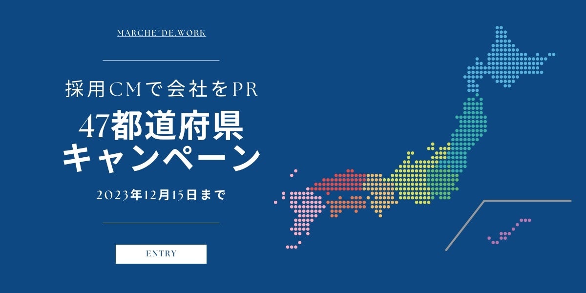 就活マルシェは、企業と求職者の出会いをサポートする新しいメディアです。この度、未掲載の都道府県の企業を対象に、採用CMの制作・掲載の機会を提供するキャンペーンを実施いたします。全国から選ばれた47社の企業が、独自の採用CMを通じて、魅力とビジョンを広く訴求することができます。あなたの企業も、この機会にぜひ参加して、最高の人材を引き寄せましょう!