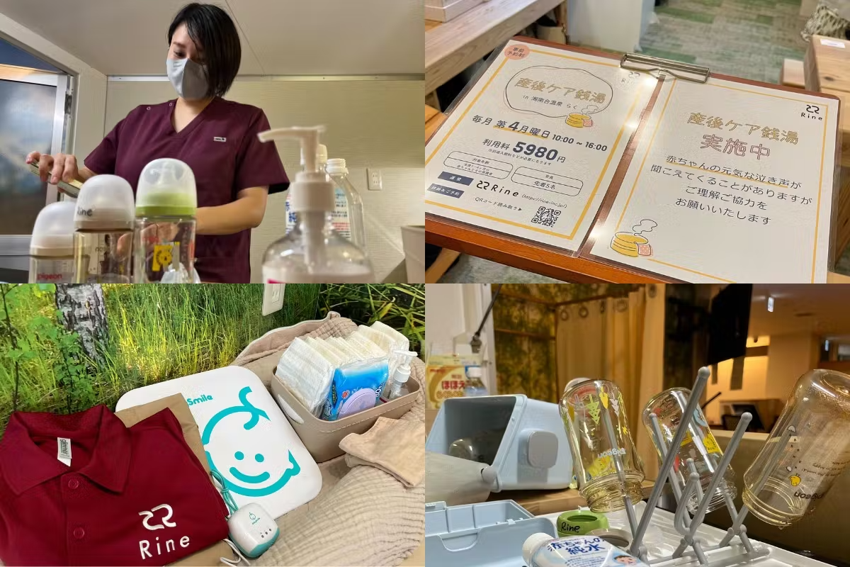 私たちの取り組んでいる「産後ケア銭湯」は、温浴施設などの施設に助産師・看護職が出張し、託児と育児相談を日帰りで利用いただくサービスです。