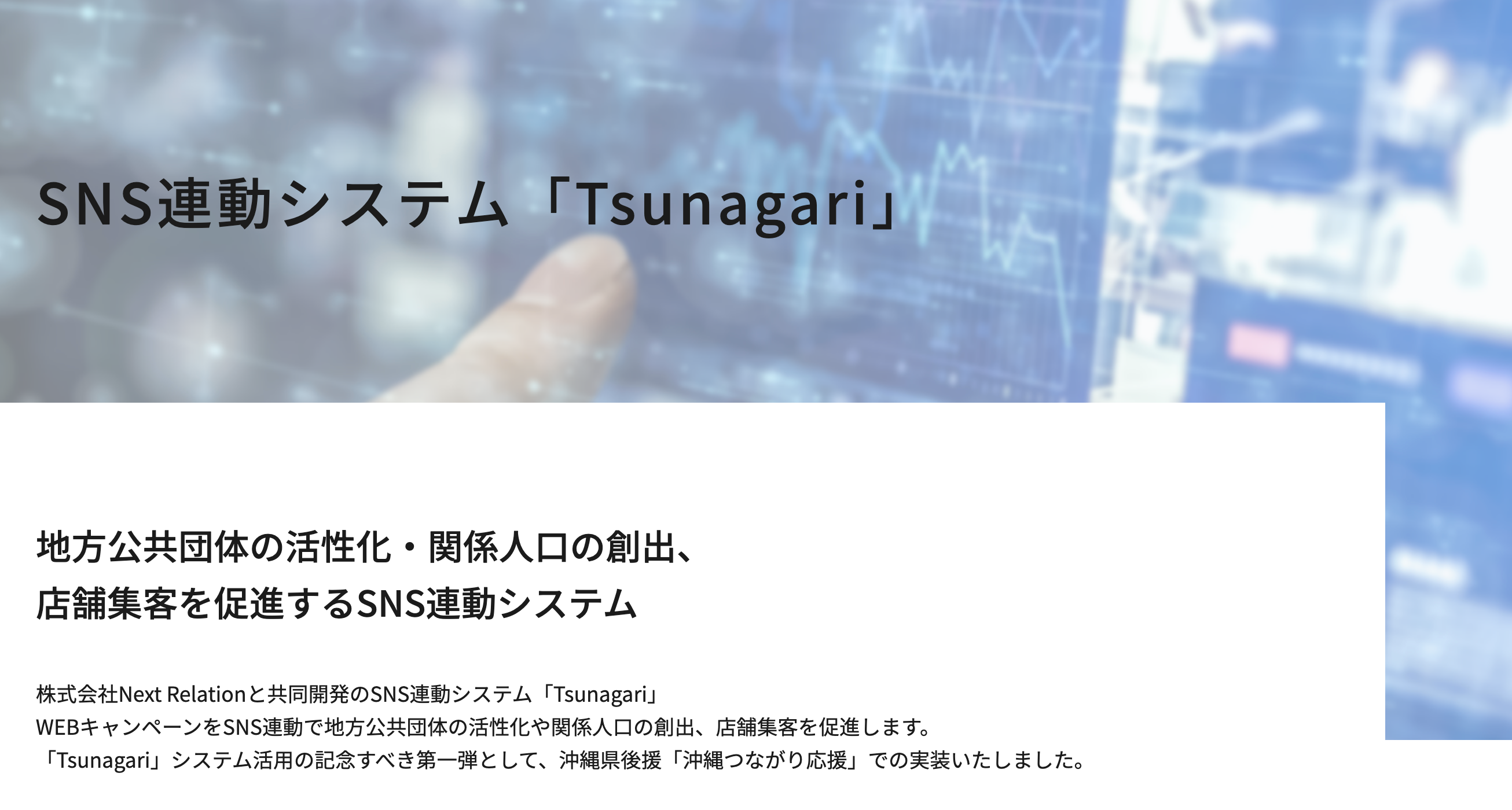 当キャンペーンのシステムは、県内外の方々が「あったらいいな」とご意見をくださった機能を搭載したフルスクラッチシステム「Tsunagari」を採用しております。