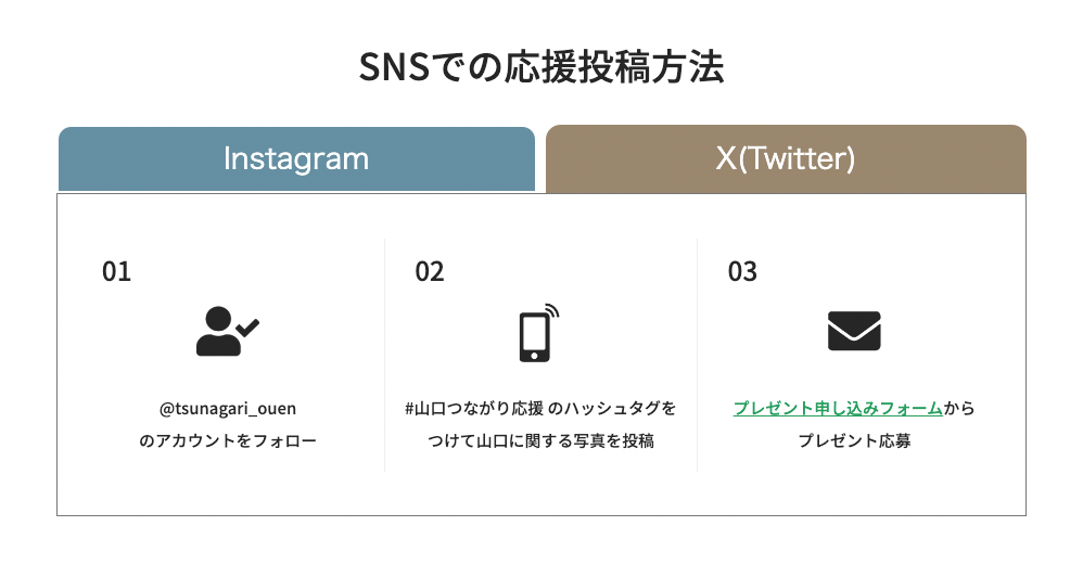 キャンペーン参加方法①. 山口県に関連する内容に「#山口つながり応援」をつけてSNS投稿!