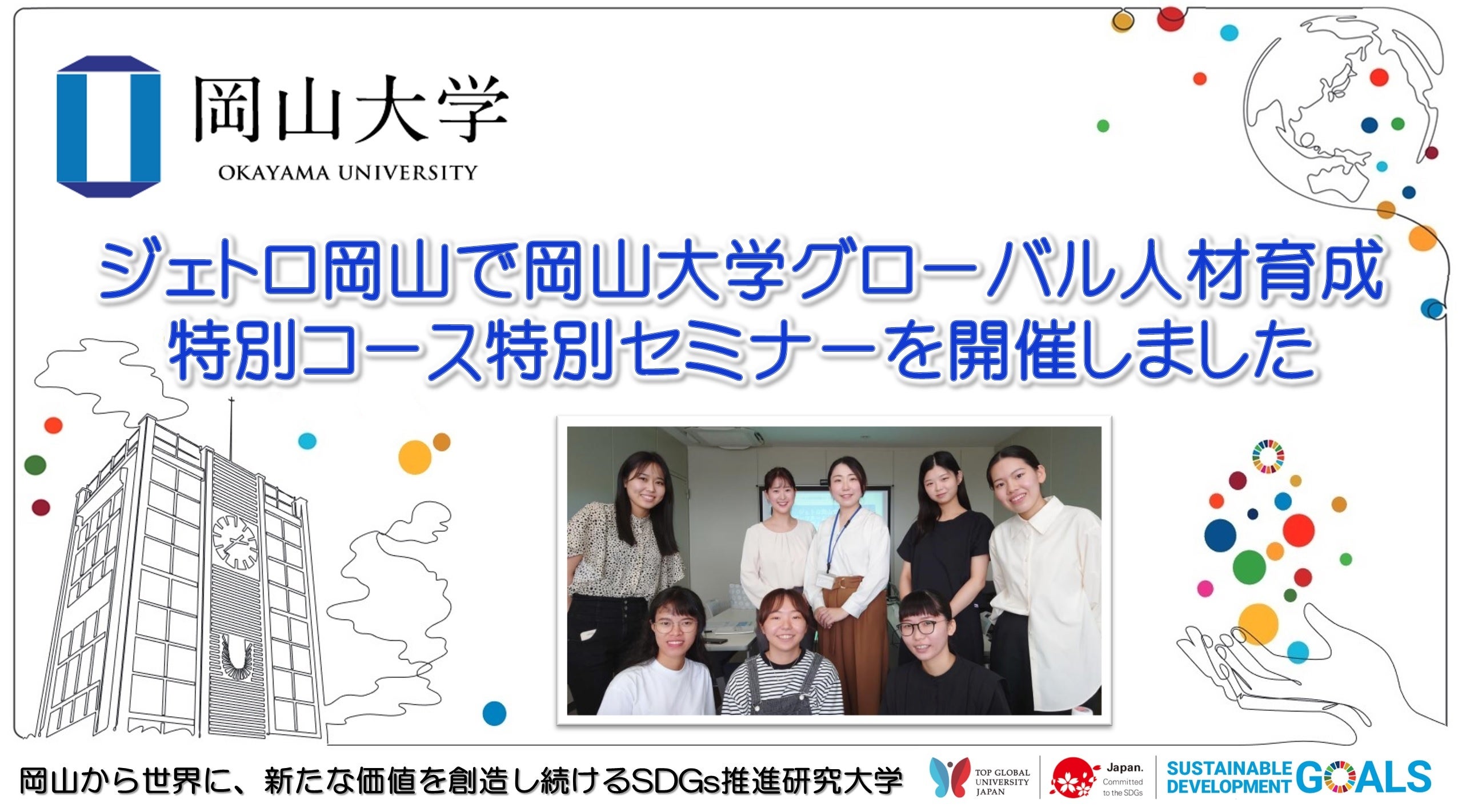 国立大学法人岡山大学(本部:岡山市北区、学長:那須保友)は2023年9月22日、本学グローバル人材育成特別コースにおいて「ジェトロ岡山で学ぶ『スポーツチームとタッグを組んで挑む!岡山の企業がタイへ~海外展開プロジェクト』」と題して特別セミナーを開催しました。