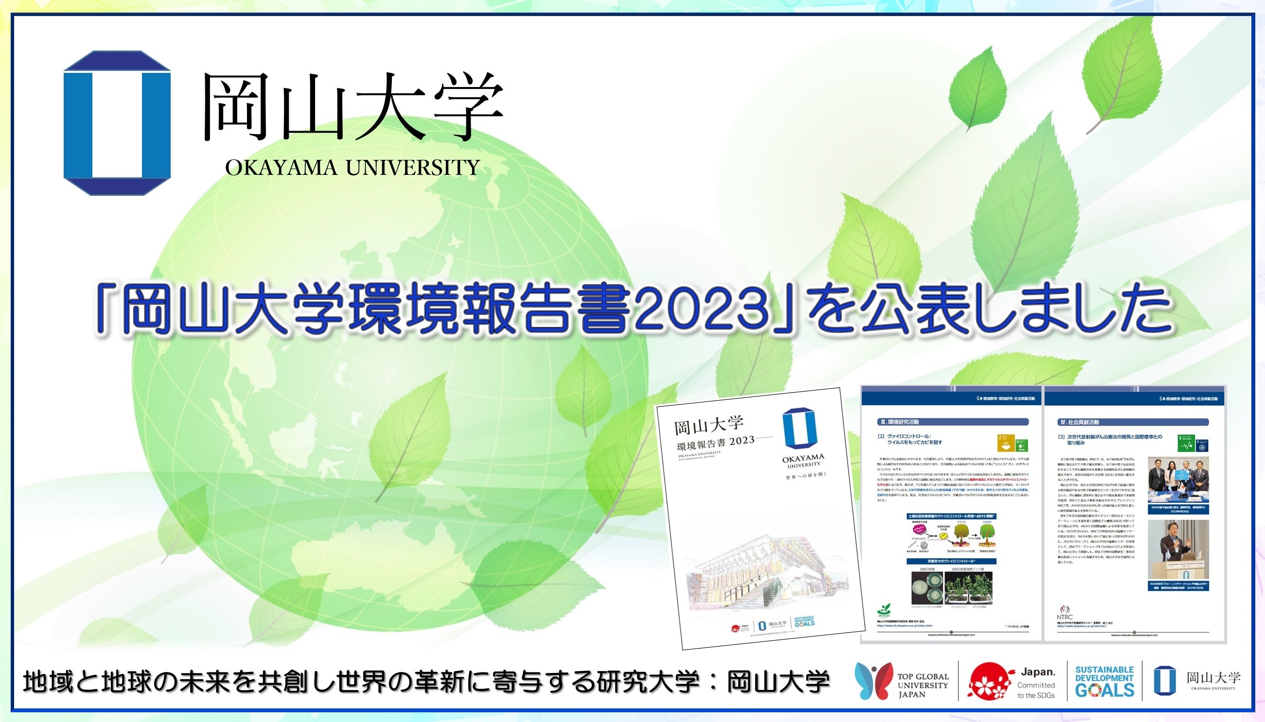 国立大学法人岡山大学(本部:岡山市北区、学長:那須保友)は2023年9月21日、「岡山大学環境報告書2023」をホームページにて公開しました。
