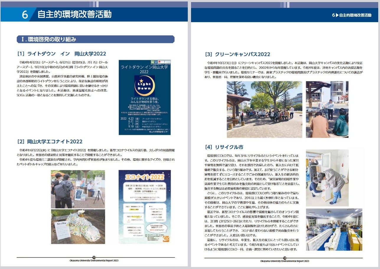 ・【岡山大学】「岡山大学環境報告書2022」を公表しました
