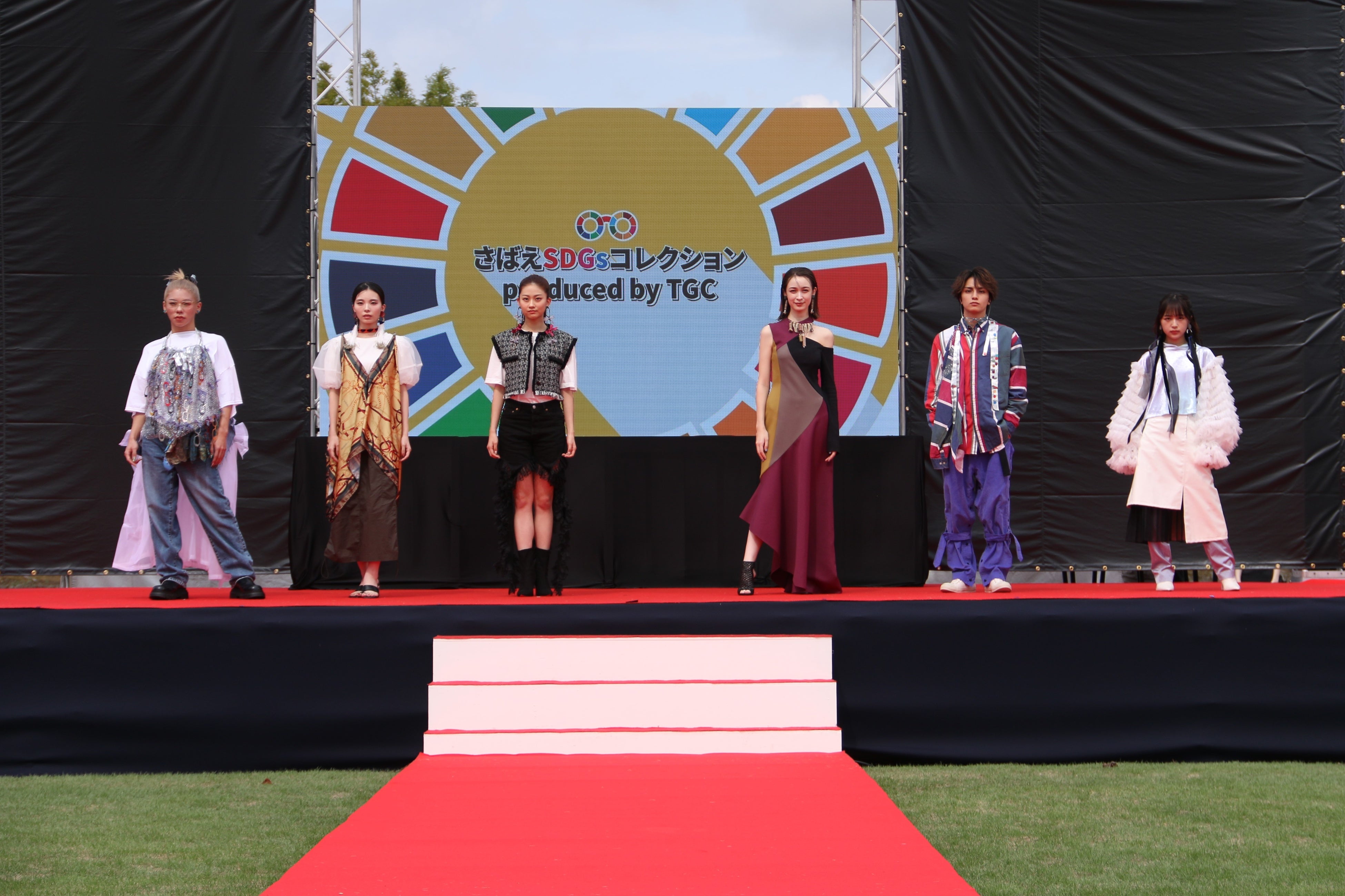 鯖江の特産品であるメガネの端材や、国内生産率が95%で日本一を誇る福井県のリボンの端切れを活用し、SDGsに関心のある福井県在住の学生からなる鯖江SDGs部が企画・デザインしたアイテムをコーディネートし、TGCでも人気のモデルがサステナブルなファッションに身を包みランウェイに登場しました。
